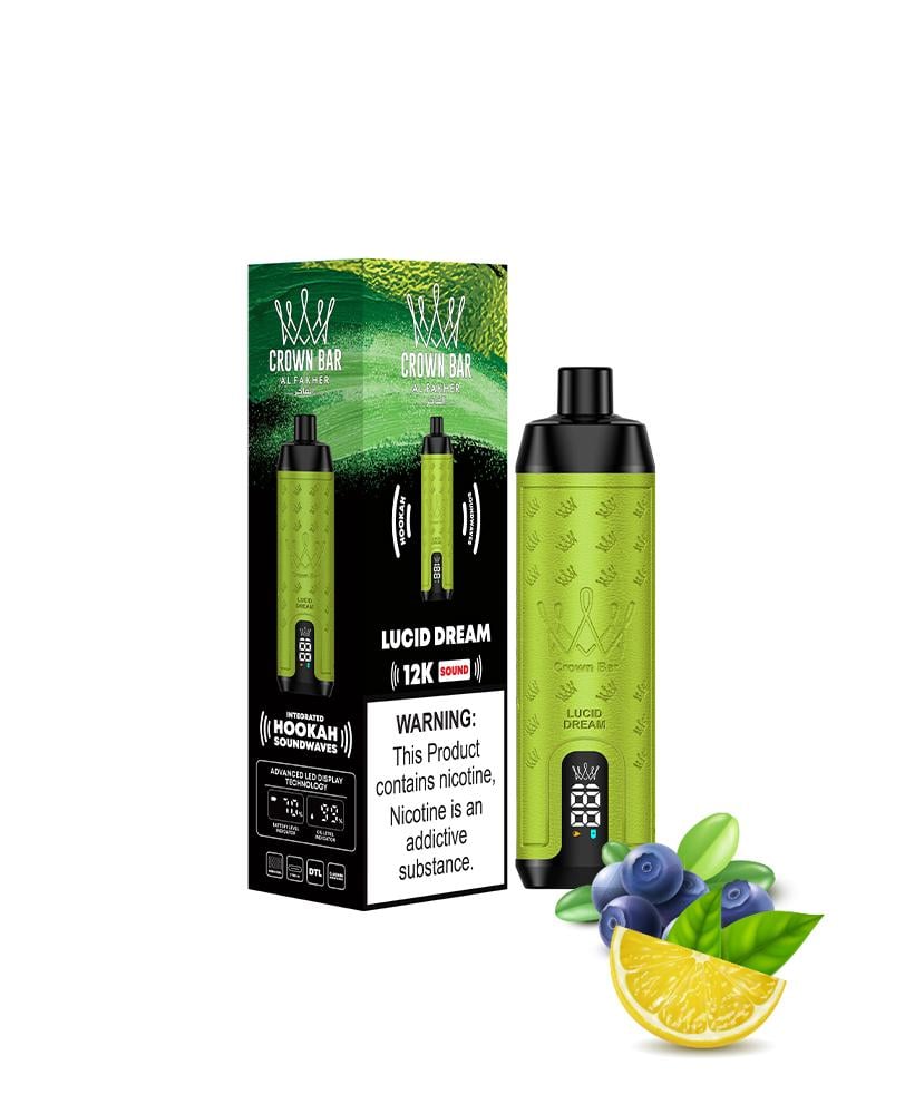 استمتع بنكهة الفانيليا واللافندر والبابونج مع كراون بار الفاخر 12000 سحبة لوسيد دريم. تجربة تدخين مريحة وهادئة!