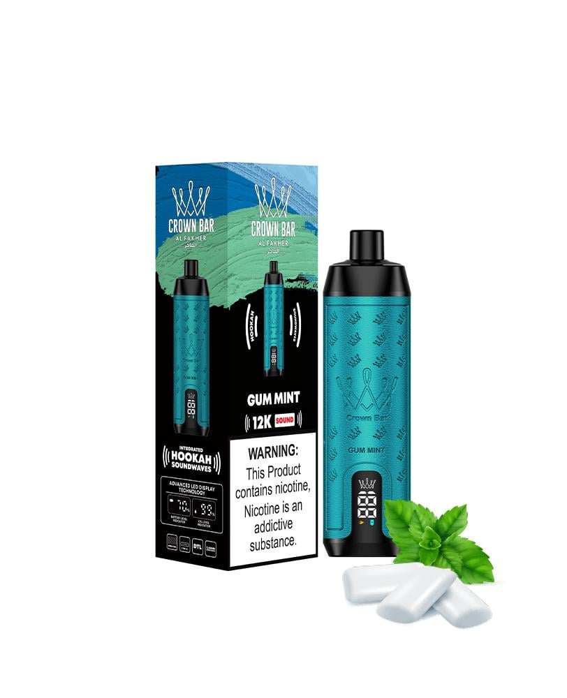استمتع بنكهة النعناع العلكة المنعشة مع كراون بار الفاخر 12000 سحبة غام مينت. تجربة تدخين طويلة ومنعشة!